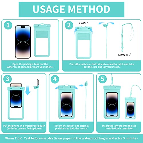 2Pcs Custodia Impermeabile Smartphone, universale Custodia Impermeabile Telefono IPX8 Cover Subacquea per Immersioni Borse a secco per iPhone 14 Pro, 13, Sumsung S22, Huawei, 7.2 Pollici (Rosa+Blu)