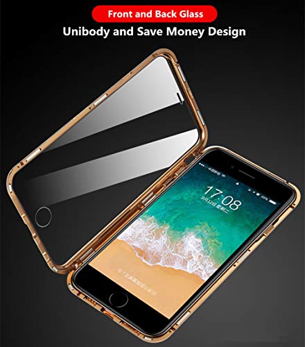 Adsorbimento magnetico ★ Custodia per adsorbimento magnetico anteriore e posteriore in vetro temperato, design in metallo con copertina flip per iPhone 7,8 and SE 2020 serie❤ Un caso che non ha bisogno di protezione dello schermo in vetro temperato ❤