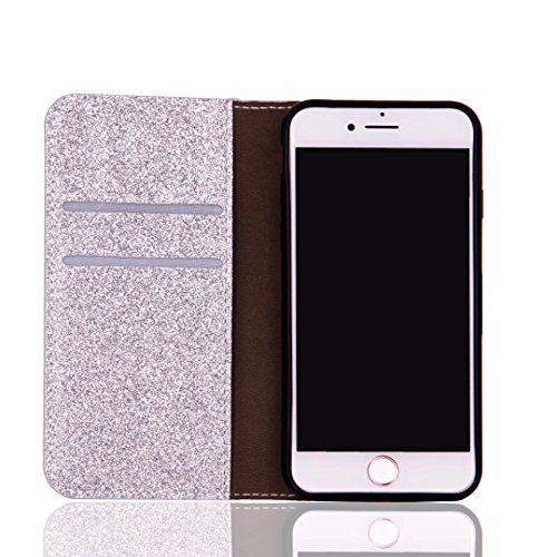Custodia per iPhone 5S/5/SE Brillantini Farfalla Portafoglio, Girlyard Flip Wallet Case Cover Full Body Protezione in Pelle PU Antiurto Supporto / Chiusura Magnetica / Porta Carte Bumper a Libro per Apple iPhone 5/5S (Argente)