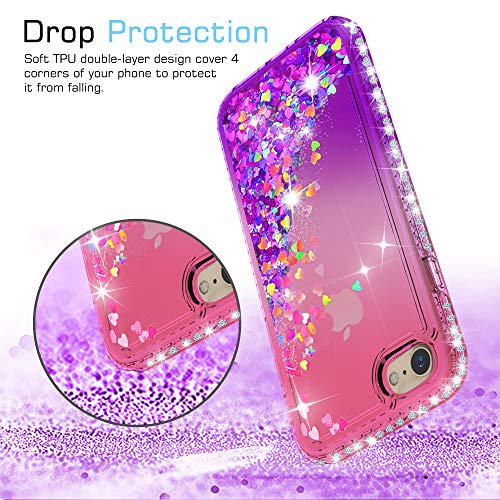 LeYi Custodia iPhone 7/iPhone 8 Glitter Cover con Vetro Temperato [2 Pack],Brillantini Diamond Liquido Sabbie Mobili Bumper Case Custodie Per Apple iPhone 7/iPhone 8 Donna ZX Pink Purple Gradient