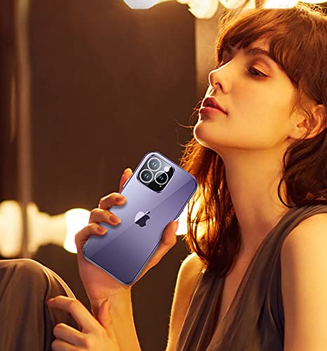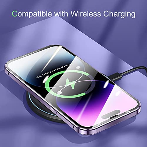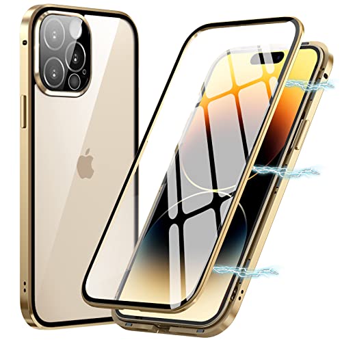 Custodia per iPhone 14 Pro,Adsorbimento Magnetico Paraurti in Metallo con 360 Gradi Protezione Case Doppi Lati Trasparente Vetro Temperato Flip Cover per iPhone 14 Pro,Oro
