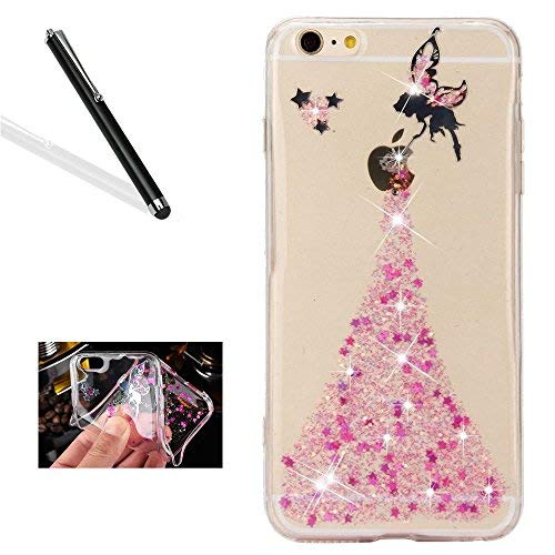 Custodia per iPhone 7 Plus,Bling Glitter Custodia per iPhone 7 Plus,Leeook Lusso Crystal Clear Custodia in TPU Silicone Bling Stella Shiny Angelo Ragazza Design Slim Fit Morbido Trasparente Flessibile Protettiva Shell Tpu Bumper Cover per iPhone 7 Plus 5.5 pollice + 1 x Nero Stilo-Ragazza,Rosa