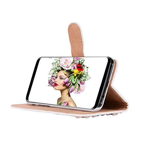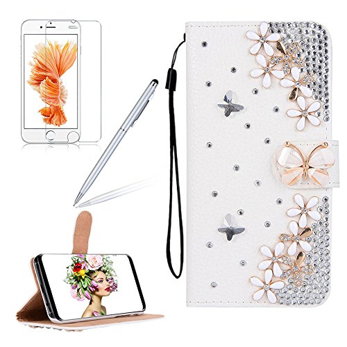 Custodia per iPhone 6S Plus / 6 Plus DIY Brillantini Portafoglio - Girlyard 3D Bling Glitter Crystal Strass Diamante Cover in Pelle Colorata Fiore Farfalla Disegno Libro Antiurto Supporto Wallet Chiusura Magnetica PU Morbido Copertura Case per iPhone 6 Plus / iPhone 6S Plus 5.5" - Bianca Farfalla e fiore