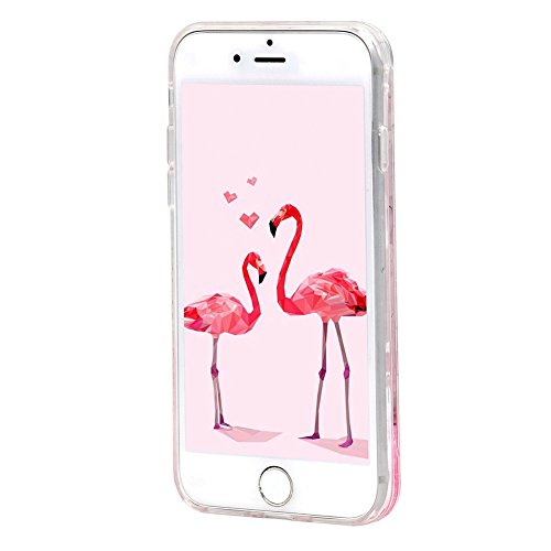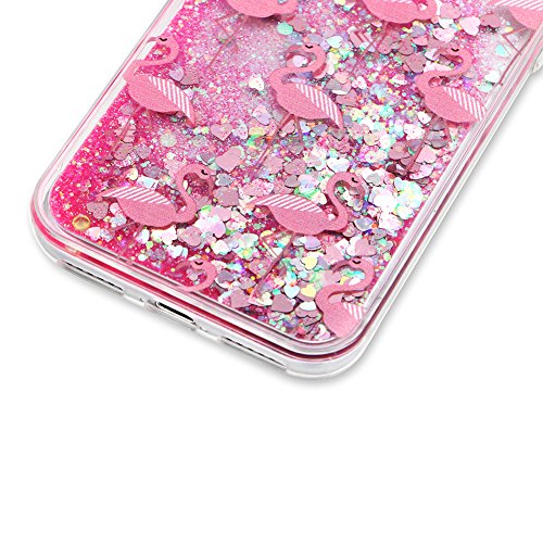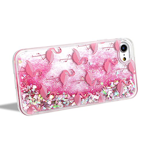Rosa Custodia per iPhone 7 / iPhone 8 Brillantini Rigida Liquido - Girlyard Sparkling Bling Flusso Acqua Sabbie Stella Amore Disegno Glitter Clessidra Copertura Protettiva Antiurto in Plastica per iPhone 8 / iPhone 7 4.7" - Fenicottero 01