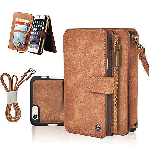 Custodia per iPhone 6s, CORNMI multifunzione in pelle borsa tasca con zip custodia Flip a portafoglio in pelle con 14 slot Crad e cinghia da polso per iPhone 6/6S 4.7 pollici iPhone 6/6S Plus Brown