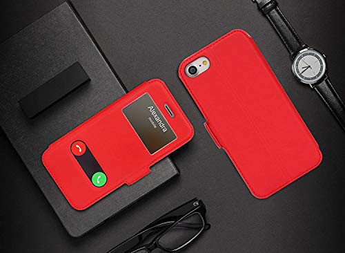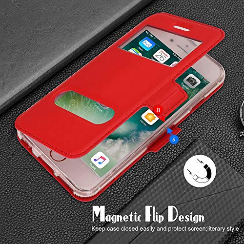 FYY Custodia per iPhone 7/8, cover iPhone SE 2022/2020, custodia magnetica Smart View con finestra di apertura per Apple iPhone SE 2022/2020/iPhone 8/iPhone 7 4.7", colore: Rosso