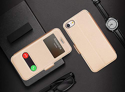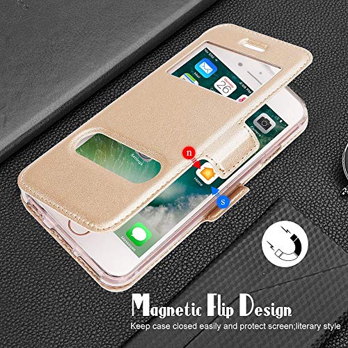FYY Custodia per iPhone 7/8, cover iPhone SE 2022/2020, custodia magnetica Smart View con finestra di apertura per Apple iPhone SE 2022/2020/iPhone 8/iPhone 7 4.7", colore: Oro