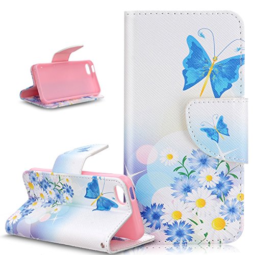 Custodia iPhone SE,Custodia iPhone 5S,Custodia iPhone 5,Custodia Case Cover per iPhone 5S 5/SE,iPhone 5S 5/SE Custodia C dia Cover per iPhone SE 2016 & iPhone 5S 5,Farfalla blu fiore della Margherita