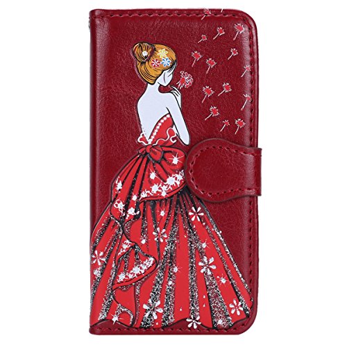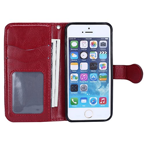 Custodia iPhone 5S, Cover iPhone SE a Libro Bling Glitter, SainCat Custodia in Pelle Cover per iPhone 5/5S/SE, Ultra Sottile Glitter Fiori Leather Case Book Style Custodia Morbida Protettiva Cover Ultra Soft PU Leather Antiscivolo Custodia a Portafoglio Shock-Absorption Wallet Cover Supporto Skin Cover Shell Magnetico Flip Case, ID Slot per Scheda Protettiva Custodia Coperture Bumper Cover per iPhone 5/5S/SE-Scarlatto