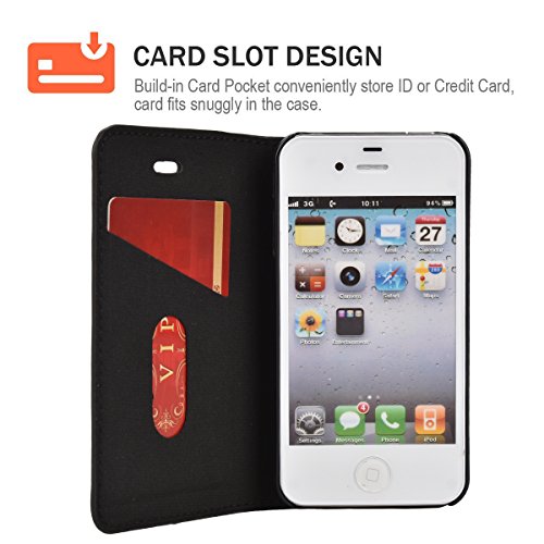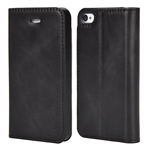 Custodia iPhone 4s, Cover iPhone 4s, Mulbess [Portafoglio Protettiva] Custodia In Pelle Con Supporto Per iPhone 4s / 4 Custodia Pelle, Nero