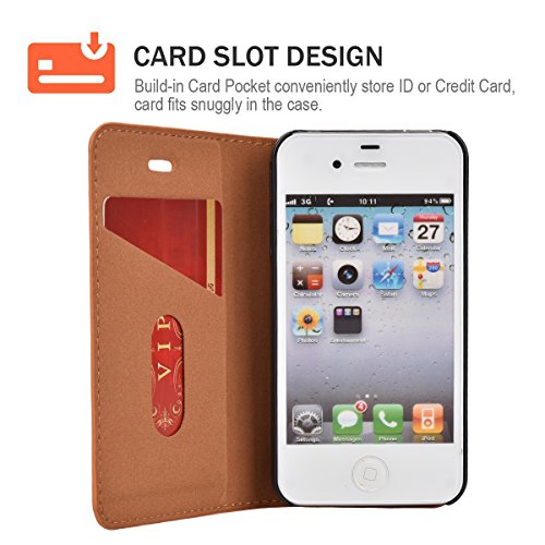 Custodia iPhone 4s, Cover iPhone 4s, Mulbess [Portafoglio Protettiva] Custodia In Pelle Con Supporto Per iPhone 4s / 4 Custodia Pelle, Marrone
