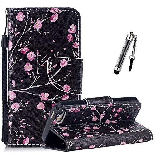 Custodia per iPhone SE / iPhone 5S / iPhone 5, Cover Case per iPhone SE 5S 5, ZCRO Cover Pelle per iPhone SE 5S 5 Custodia Portafoglio Flip a Libro Copertura Elegante Completa Protettiva Shell Cuoio in Pelle PU Leather Wallet Book Style Cassa Caso Antiurto con Magnetica Disegni Colorate Supporto Stand Silicone Morbida Back Case Bumper Cover con Stilo Penna per iPhone SE 5S 5 (Elegante Fiori Rosa)