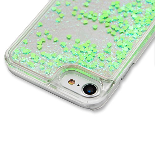 Custodia Per iphone 7 Cover Rigida Plastica Dura Trasparente,Funyye Brillantini Glitter Muovono Liquida con Cuore Sequin Flowing Quicksand 3D Creative Disegno Protettivo Caso + Pellicola Protettiva Copertura Per Apple iphone 7 Head Case Shine Bling Liquid Shell Bumper - Verde