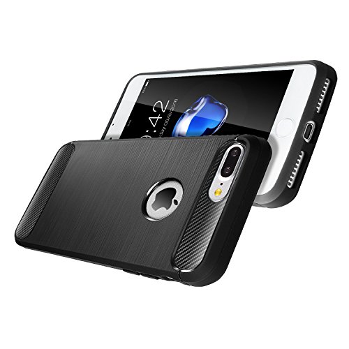 Custodia iPhone 8 plus, Custodia iPhone 7 plus, Cover [Rugged Armor] Antiurto di Silicone Morbido Gomma Disegno d'aspetto Metallico Massima Protezione Da Cadute e Urti Bumper per iPhone 7 plus (2016)& iPhone 8 plus (2017)5.5 Nero