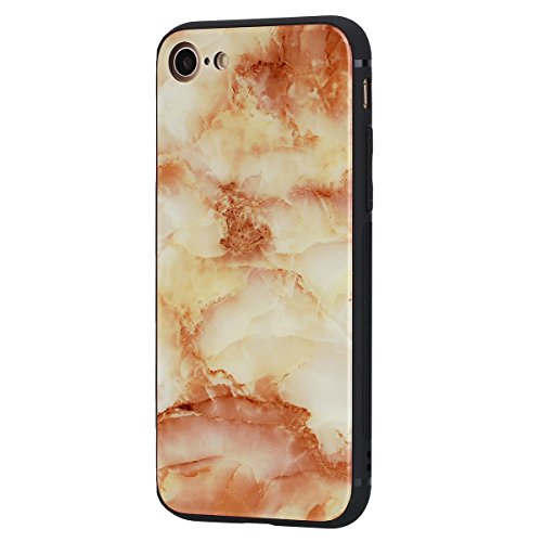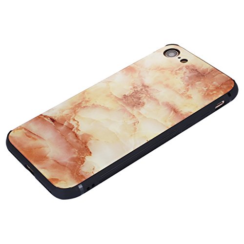 Custodia iPhone 7,iPhone 8 Cover Silicone,Herbests Cover per iPhone 7/8 Backplane in vetro TPU Specchio esign Custodia in Transparent Silicone Case Ultra Slim Morbida Gel Cover Case Shock-Absorption Custodia Protettiva Crystal Clear Cover Gomma Case Caso Trasparente Sottile Ultra Thin Slim Protettiva Anti-scratch Skin Cover Shell Coperture Bumper Cover per iPhone 7/8,Roccia gialla marmorizzata