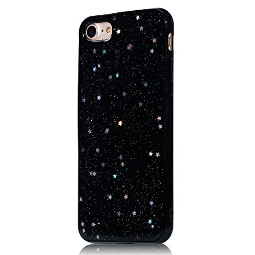 Custodia iPhone 7, iPhone 7 Cover, iPhone 7 Custodia Silicone, JAWSEU Ultra Sottile TPU Cover Custodia per iPhone 7 Coperture Protectiva Bumper Stella Paillettes Flessibile Gomma Morbida Silicone Custodia Cover per iPhone 7 Anti Graffio Anti Scossa Anti Scivolo Soft Back Cover Case per Apple iPhone 7 4.7 - Nero Stella