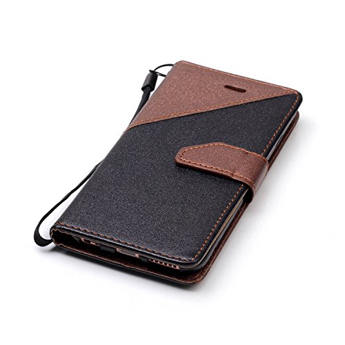 Custodia iPhone 6S 4.7 Cover iPhone 6 4.7,Ukayfe Stitching Colore Flip Case Cover per iPhone 6S 4.7,iPhone 6/6S Lussuosa Astuccio Custodia Cover [PU Leather] [Shock-Absorption] Protettiva Portafoglio Cover Custodia Giuntura da Polso Foglio con Super Sottile Morbido Silicone TPU Interno Case e Porta carte di credito Portafoglio Custodia Protettiva Cover Copertura Tutta Potente per iPhone 6/6S-Nero + Marrone