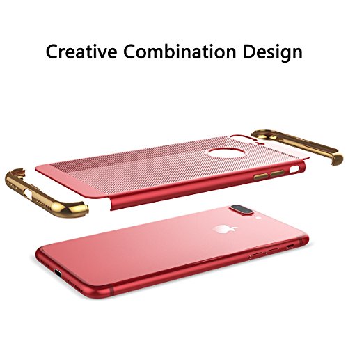 Custodia iPhone 7 Plus, Dexnor 3 in 1 Cover Apple iPhone 7 Plus Custodia Rigida Rosso Honeycomb Ultra Slim Matte Opaco Hard Case Placcatura PC Plastic Protezione Protettiva Bumper Back Cover Shell Antigraffio Antiurto