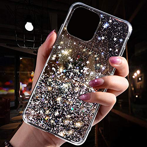 Custodia per iPhone 12 Pro Max,Glitter Bling Trasparente Silicone Paillettes Morbida Case Ultra Slim Antiurto TPU Bumper Soft Touch Protettiva Cover per iPhone 12 Pro Max,Nero