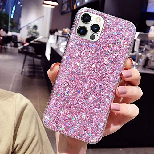 Custodia per iPhone 12 Pro Max,Glitter Brillantini Trasparente Silicone Paillettes Morbida Case Brillante Ultra Sottile Antiurto TPU Bumper Donna Protettiva Cover per iPhone 12 Pro Max,Rosa