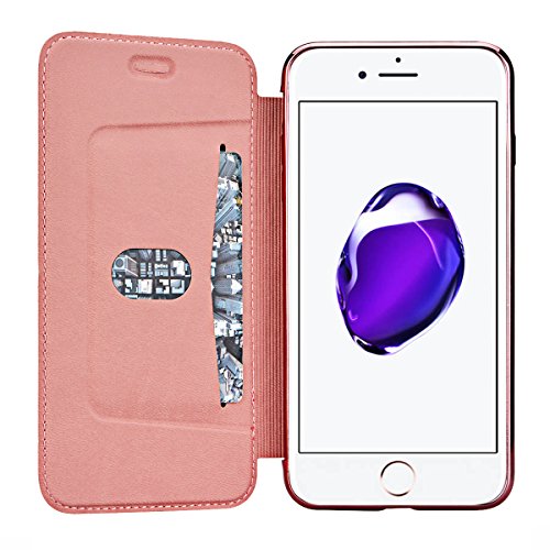Custodia Iphone 6s, Custodia iPhone 6, GrandEver Custodia PU flip cover + trasparente chiaro Back Posteriore Folio Cover Copertura Bookstyle Cover Protettiva in Pelle Folio Custodia Leather Case Wallet Flip Protective Cover Protector Conchiglia per Apple Iphone 6s/iphone 6 (4.7) + 1 x pennino, Plastica, Rose Gold, iPhone 8 Plus / iPhone 7 Plus (5.5")