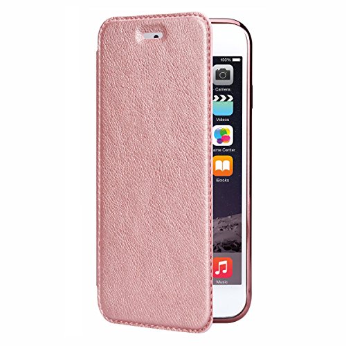 Custodia Iphone 6s, Custodia iPhone 6, GrandEver Custodia PU flip cover + trasparente chiaro Back Posteriore Folio Cover Copertura Bookstyle Cover Protettiva in Pelle Folio Custodia Leather Case Wallet Flip Protective Cover Protector Conchiglia per Apple Iphone 6s/iphone 6 (4.7) + 1 x pennino, Plastica, Rose Gold, iPhone 6S/iPhone 6 (4.7")