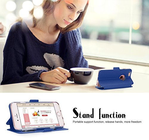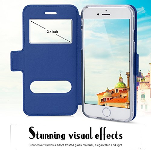 FYY Custodia iPhone 6S, Custodia iPhone 6, Custodia magnetique Smart View con Finestra di Apertura per Apple iPhone 6s/6 A-Bleu Foncé