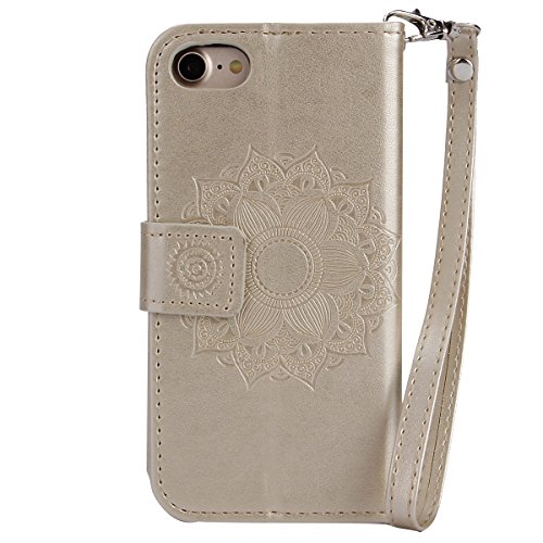 Custodia iPhone 7 Mandala, Custodia iPhone 8 Pelle a Libro, SainCat Custodia in Pelle Cover per iPhone 7/8, Fiori di Datura Leather Case Book Style Custodia Morbida Protettiva Cover Ultra Soft PU Leather Antiscivolo Custodia a Portafoglio Shock-Absorption Wallet Cover Supporto Skin Cover Shell Magnetico Flip Case, ID Slot per Scheda Protettiva Custodia Coperture Bumper Cover per iPhone 7/8 4.7-Oro
