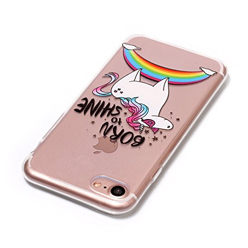 Custodia per iPhone 7 4.7" morbido,Herzzer Crystal Creativo Elegante arcobaleno Unicorno bianco Unico Molto Ultra Sottile Clear Cristallo sottile Silicone TPU Gel flessibile case cover, Protettivo Skin in Liscio Smooth Toccare Anti scratch di Bumper Shell caso per Apple iPhone 7 4.7" (BORN TO SHINE) + 1 x Gratuito Basamento Telefono Rosa Regolabile + 1 x Gratuito Pennino Rosa