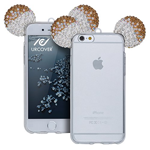 Custodia iPhone 6 / 6s Orecchie da Topolino, Cover Protettiva in Silicone Trasparente Morbida Flessibile con Laccio, Back Case Apple iPhone 6 / 6s con Strass Brillantini Femminile Donna di Colore Oro Argento