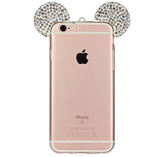 Custodia iPhone 6 / 6s Orecchie da Topolino, Cover Protettiva in Silicone Trasparente Morbida Flessibile con Laccio, Back Case Apple iPhone 6 / 6s con Strass Brillantini Femminile Donna di Colore Agento Colorfull
