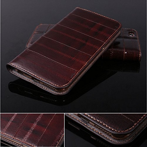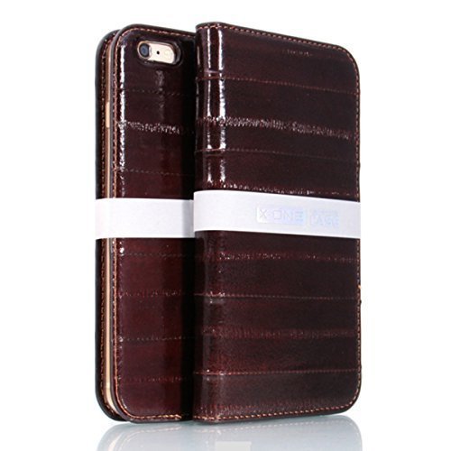 Onex X - Custodia per iPhone 6/6S, in vera pelle di anguilla - marrone - prodotto di eccezione cucita a mano - aletta laterale con porta carte e banconote