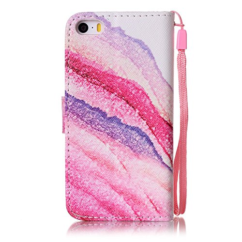 Custodia Per iphone 5 / 5S / SE in Pelle,Funyye Sabbia Rosa Disegni Elegante Libro Portafoglio Cover e Pellicola Protettiva Copertura [Cordino/Supporto Stand/Porta Carte/Chiusura Magnetica] Protettivo Caso Shell Skin Bumper Per iphone 5/5s/se Flip Wallet Leather Case With Hand Strap Lanyard Screen Protector