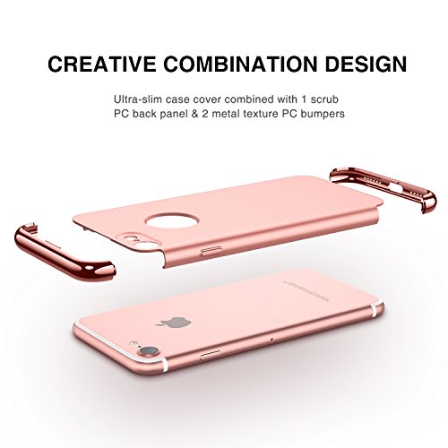 Custodia per iPhone 7, RANVOO in 3 parti in stile extra sottile e rigida cover iPhone 7 (11,9 centimetri 4,7 pollici), Oro Rosa