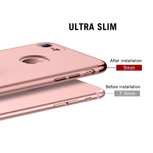 Custodia per iPhone 7, RANVOO in 3 parti in stile extra sottile e rigida cover iPhone 7, iPhone 7 case with Built-in Ring Grip Holder (11,9 centimetri 4,7 pollici), Oro Rosa