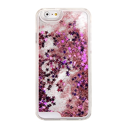 Custodia per iPhone 6 Plus, iphone 6 5.5" Custodia Rigida, Cover per iphone 6 Plus, iPhone 6 Plus Liquid Case, iPhone 6 5.5" Custodia Shock-Absorption Bumper e anti-graffio Trasparente, Ukayfe Creative Disegno 3D Flowing della copertura della cassa chiaro liquido scintillio di Bling Quicksand Stelle plastica per iPhone 6 Plus/6S Plus con Stilo Penna - rosa stella