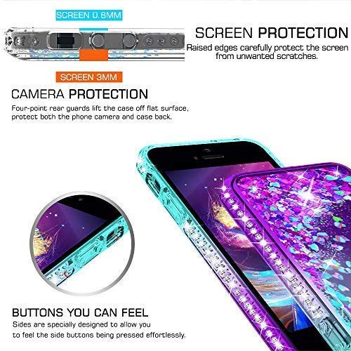 LeYi Custodia iPhone 5S / iPhone SE/iPhone 5 / iPhone SE 2 Glitter Cover con Vetro Temperato [2 Pack],Brillantini Diamond Liquido Sabbie Mobili Bumper Case Custodie Donna ZX Turquoise Purple Gradient
