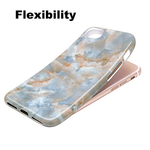 ZXK Custodia iPhone 7, CO Custodia in Silicone Morbida iPhone 7 Shock-Absorption Anti-Graffio Design Marmo Stilosa Bumper Case Gomma Flessibile Sottile Fina Protettiva Shell-Blu