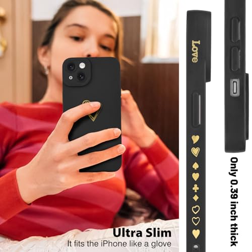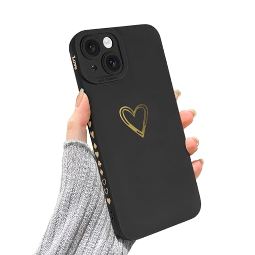 Custodia per iPhone 15 Plus, Simpatico Design Oro Amore Cuore Morbido Silicone Liquido Flessibile per Donne Ragazze Cover Protettiva Antiurto per Fotocamera per iPhone 15 Plus -Nero