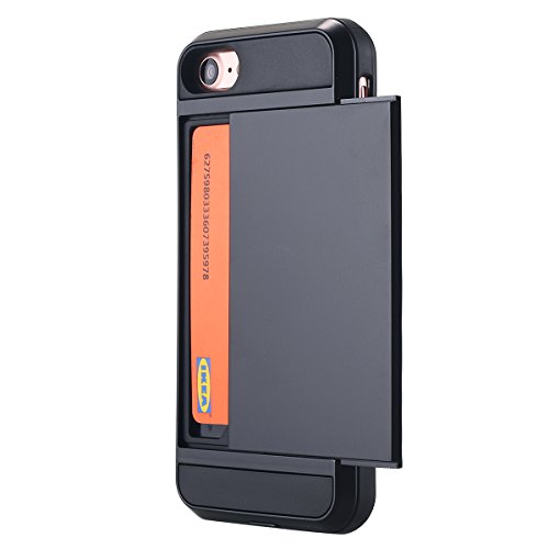 Custodia iPhone 8,iPhone 8 case,Custodia iPhone 7,iPhone 7 case, Snewill Sliding Card Holder iPhone 7 Wallet Case Cover Secret ID Slot Rugged Protective Hard Shell Skin Flexible Soft TPU Rubber Bumper Hybrid Armor Tough Case For iPhone 8/iPhone 7-Black