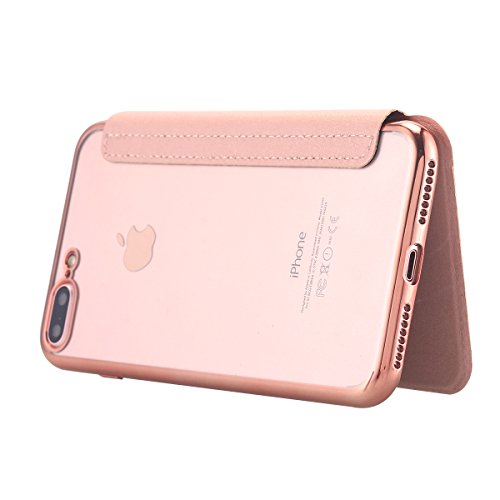Custodia iPhone 8 Plus,Custodia iPhone 7 Plus,Snewill [Ultra Slim] PU Leather Folio Flip Wallet Case with Card Slot Clear Soft TPU Back Cover For iPhone 8 Plus/iPhone 7 Plus 5.5"-Rose Gold