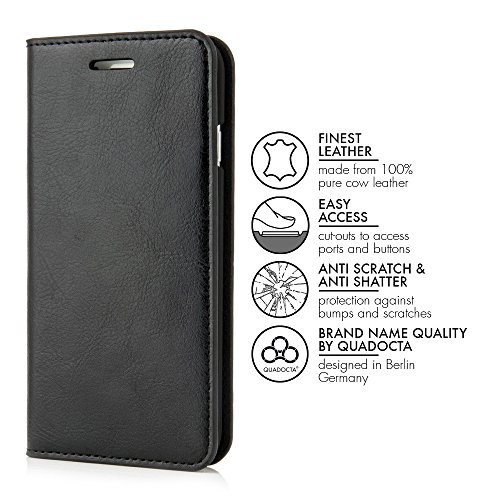 Custodia per iPhone 7 (4,7") custodia sottile in pelle “Liber“ - cover in pelle per iPhone 7 Apple, custodia di protezione Book Case color nero di QUADOCTA® Protezione ideale per iPhone7 Jet Black nero lucido