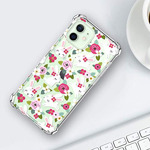 YEPO - Custodia per iPhone 12, iPhone 12 Pro, sottile e trasparente per iPhone 12, con motivo a coniglio e fiori, antiurto, custodia morbida per iPhone 12/12 Pro da 6,1 pollici