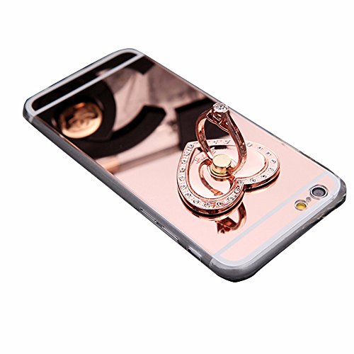 Custodia per iPhone SE 5 5S + supporto ad anello, morbida e antigraffio, ultra sottile, in TPU, con supporto per anello a 360 dita, colore: oro rosa