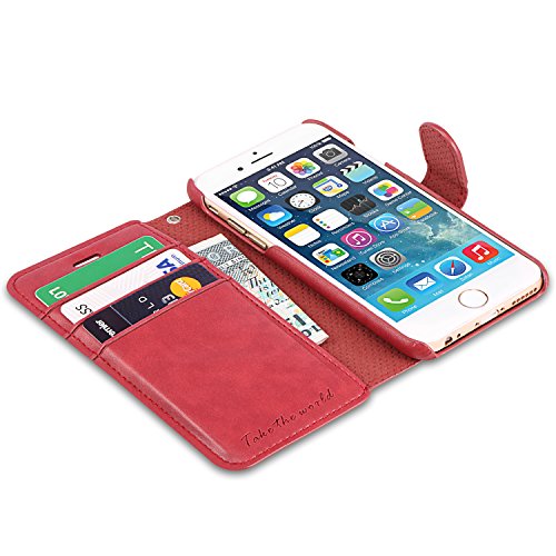 Custodia iPhone 6s, TUCCH Cover in Pelle, [GARANZIA DI VITA], [Pellicole Protettive] Carta Fessura Flip Stand Folio Libro Wallet Chiusura Magnetica Cordino Bracciale Cover per iPhone 6s/6 - Rosso