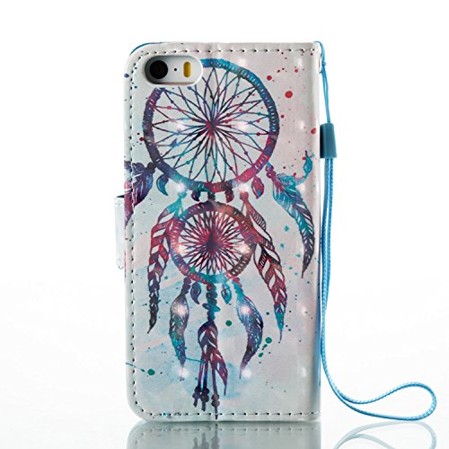 Custodia iPhone 5S,YingC-T 3D Creativo Brillantini Shiny Elegante di Sottile iPhone 5 Custodia PU pelle del Cuoio Copertura Portafoglio/ Wallet/ Libro Protettiva Supporto Stand Porta Carte Chiusura Magnetica Snap-on Book Style con Cinturino da Polso Lanyard Custodia Copertura di Vibrazione Folding Flip Caso Premium Soft Flexible Protettiva Custodia Bumper Posteriore Cover per Apple iPhone 5/SE/5S, Campanula Blu