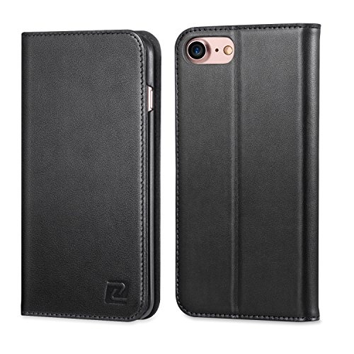 Custodia iPhone 7 Plus - ZOVER cassa del cuoio genuino, Flip Folio libro di caso, copertura del raccoglitore con Kickstand Feature Card Slot & supporto di identificazione e chiusura magnetica per iPhone 7 Plus, Nero