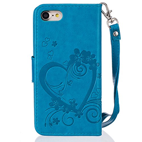 Custodia iPhone7,iPhone7 Cover,Cozy Hut® Custodia Apple iPhone7 con Strap, Apple iPhone7 Flip Custodia Cover Case, Creative Disegno stampa stile del libro Portafoglio Cover Case in PU Cuoio Wallet Caso copertina con funzione di supporto e morbido TPU cassa interna per Apple iPhone7 - blu