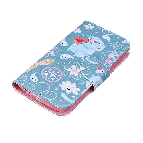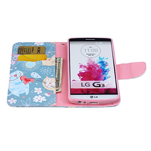 LG G3 Custodia, ISAKEN Creative Disegno stampa stile del libro Portafoglio Cover Case in PU Cuoio, LG G3 protettivo Wallet Caso con funzione di supporto e morbido TPU cassa interna - gatto blu fiori bianco amore rossa
