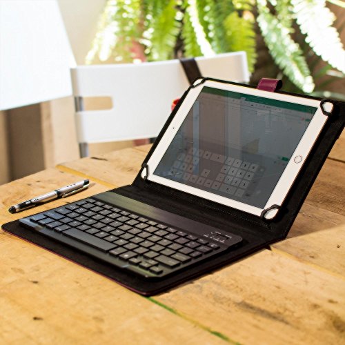 2-in-1 custodia a portafoglio in pelle con supporto e tastiera estraibile - multiuso Le funzionalità > utilizzare come compact Keyboard Folio Case o classica custodia Folio Tablet pieghevole. Materassino stand supporta Display a mani libere. Rimuovere magnetico porta tastiera per trasformare Keyboard Cover in classic custodia a portafoglio. Protettiva in pelle sintetica premium esterno fornisce durevole, robusto, cuscino antiurto in caso di caduta. In Camoscio morbido interno in microfibra protegge lo schermo da graffi e rottura.